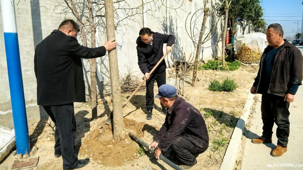 在规范有序的种植现场,王祺书记与村“两委”成员、党员群众组成工作组,顺利完成苗木定植。作为兼具生态效益与文化象征的乡土树种,这批国槐的栽种既提升了村庄绿化覆盖率,也为后续培育特色生态景观奠定基础。
