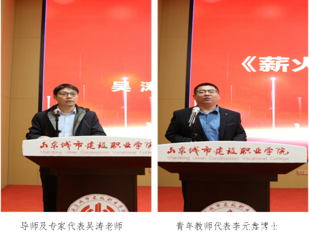 聘任仪式上,首先由学院领导为受聘的导师和专家分批颁发聘书。随后,作为导师及专家代表,吴涛老师深情回顾了自己从青涩教师到“山东省青年技能名师”的成长历程,他表示将传承前辈的匠心精神,努力做好青年教师的“智库”和“后盾”。青年教师代表李元鑫博士则郑重承诺,将虚心求教、主动作为,尽快完成从“新教师”到“好教师”的转变。