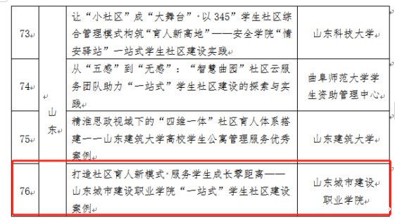在本次评选活动中,山东省共有10所高校获此殊荣,相关案例将被编入《全国高校学生公寓管理服务典型案例汇编》中,并通过中国教育后勤协会官网、公众号以及“高校学生公寓管理”公众号等官方平台进行宣传和推广。