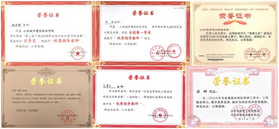 2018年5月,王洪宇、陈文胜、韩光伟等同学,参加第九届全国高等院校斯维尔杯BIM应用技能大赛,荣获工程设计专项一等奖、工程管理专项一等奖、工程造价专项三等奖。