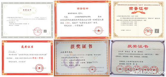 2018年11月,陈文胜、韩光伟、崔超等同学,参加第四届全国高等院校工程造价技能及创新竞赛(高职组),荣获团体三等奖、《工程计量软件应用》单项一等奖。